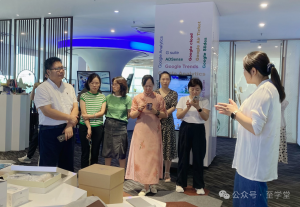 在仪式开始前,未迟董事长王安霞陪同阮晓文院长及老师代表参观了未迟数字出海创新中心,展示了未迟的技术实力和创新成果。